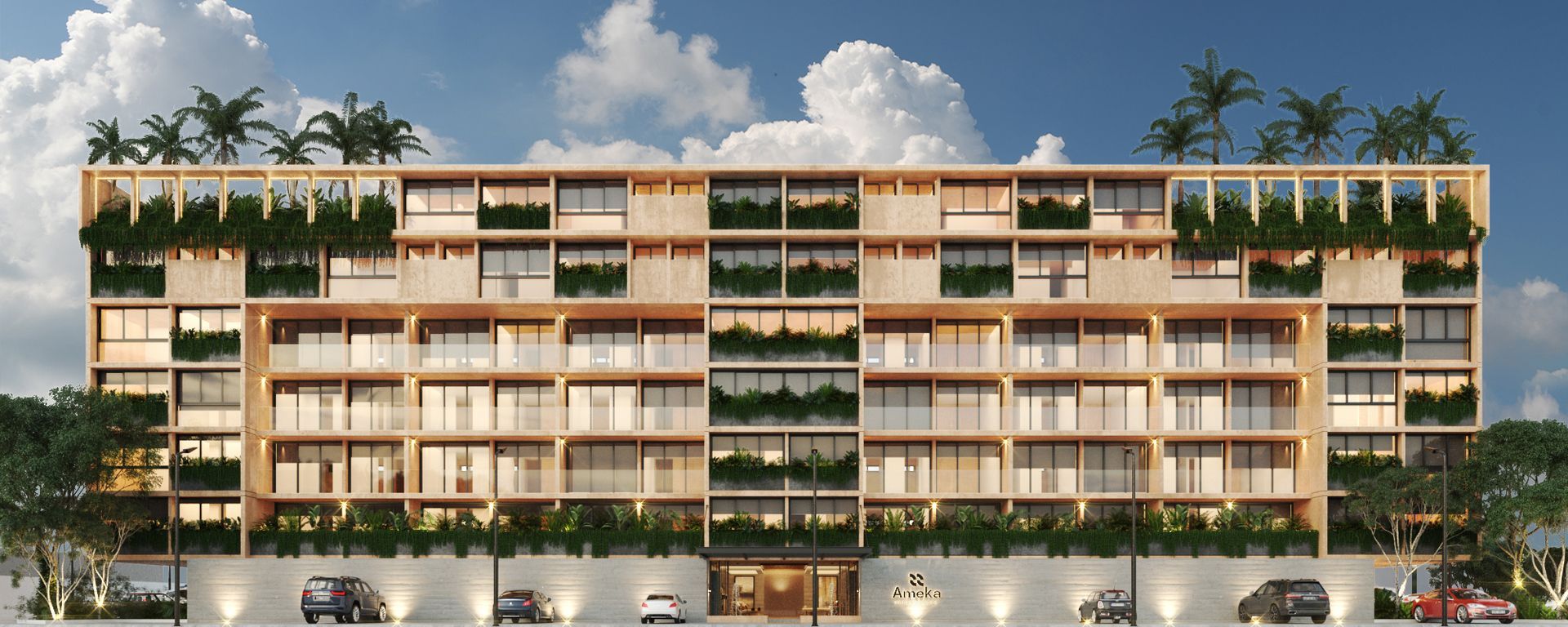 Ameka es una torre de departamentos de 7 niveles ubicada al norte de Mérida en Montealbán. Este proyecto está diseñado para aprovechar cada uno de los espacios y disfrutar de una vida moderna. Además te ofrece amenidades alineadas a lo que tu estilo de vida necesita.
